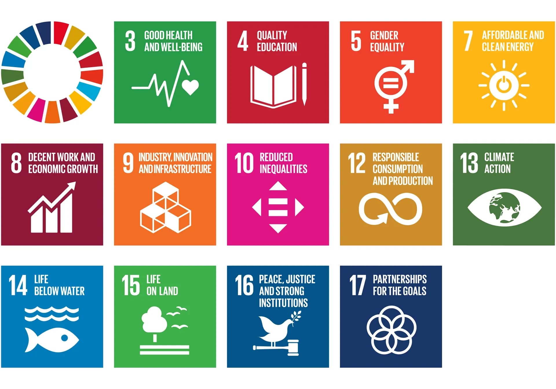 Gennem vores indsats og projekter i forbindelse med de seks ovennævnte fokuspunkter bidrager vi også til opfyldelsen af 13 af FN's 17 mål for bæredygtig udvikling (SDG'er).