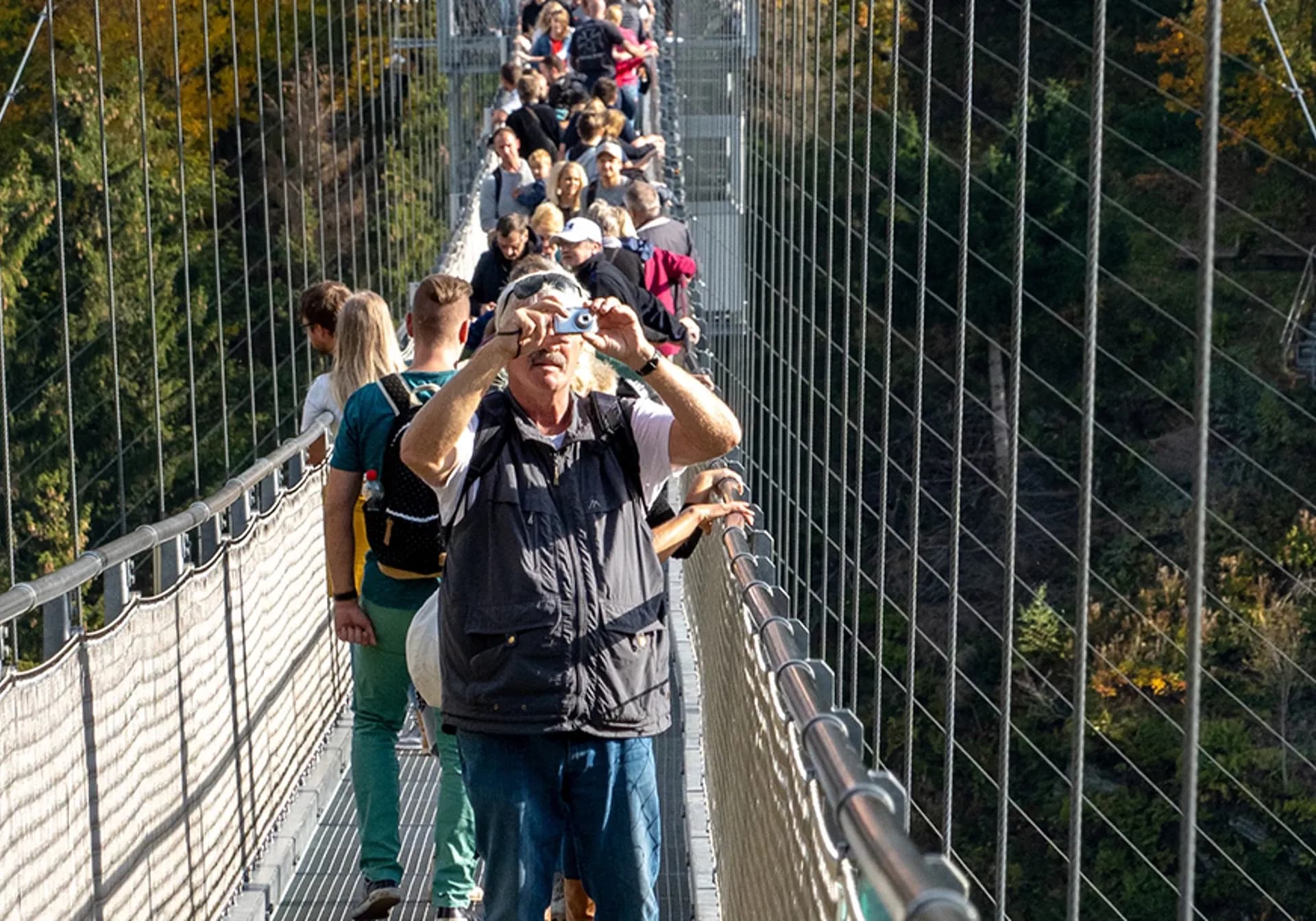 Derudover er der et begrænset antal gæster, der får lov til at gå på broen på samme tid. Der er derfor måske lidt ventetid, inden du kommer ud på broen, men du er til gengæld sikker på, at den ikke er overbelastet, når du træder ud højt over dalens bund.