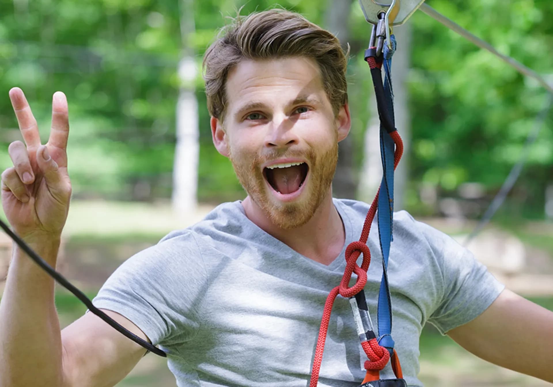 Når du går over hængebroen, hører du måske brøl og hvin. Frygt ej. Det er ikke broens gæster, men vovehalse, der frygtløst har kastet sig ud over kanten i Gigaswing eller Megazipline.