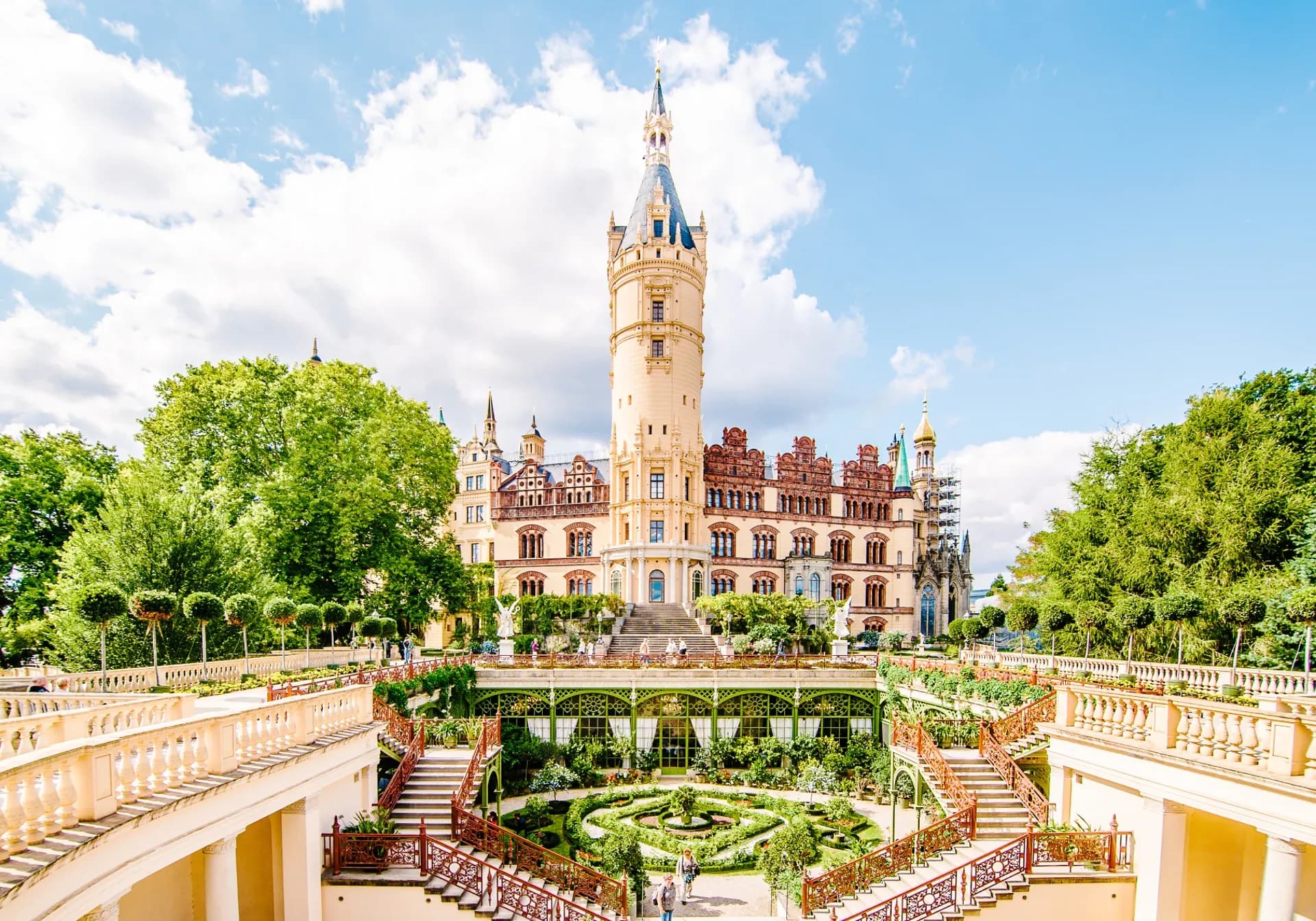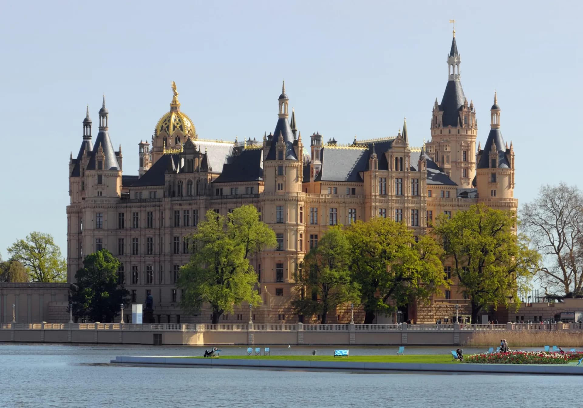 Som en ærkeægte prinsessedrøm troner Schwerin Slot midt i byens største sø og kaster stråleglans ud over landskabet.