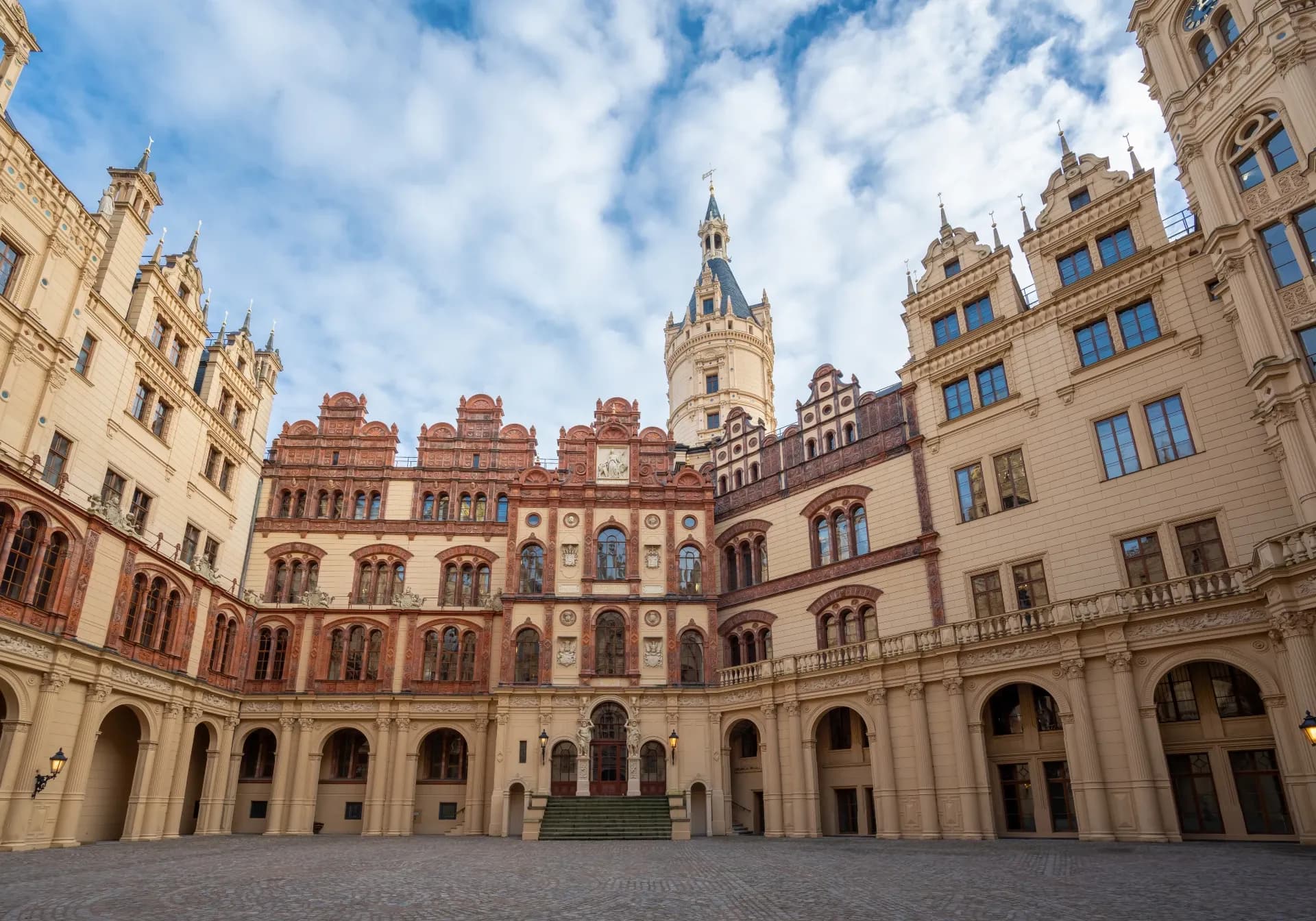 Slottet er vartegn for hovedstaden i delstaten Mecklenburg-Vorpommern – og det er nemt at forstå hvorfor. Det er et usædvanligt imponerende sted med utallige timers historie og skønhed at gå på opdagelse i.